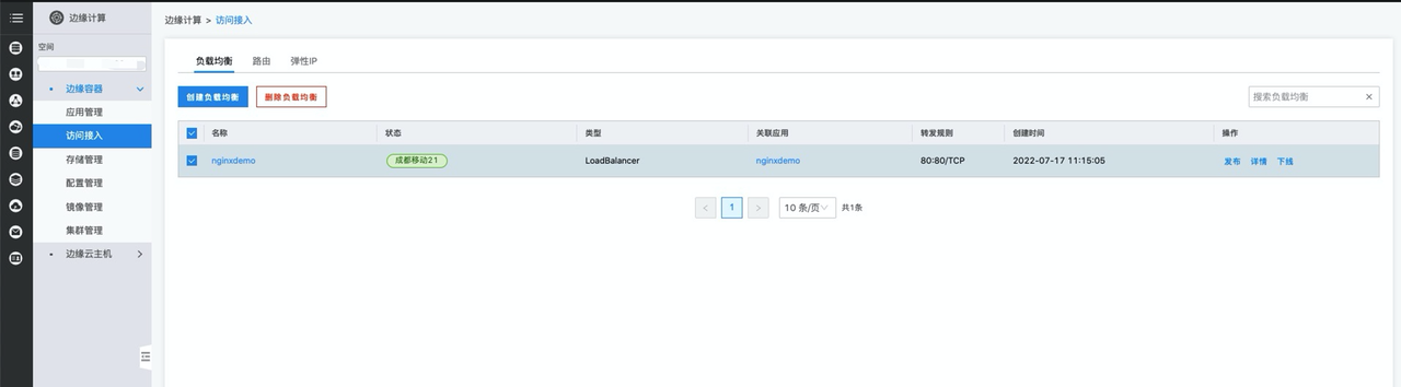 在访问接入管理中,您可以在负载均衡列表处对负载均衡进行勾选删除,如下图所示:
