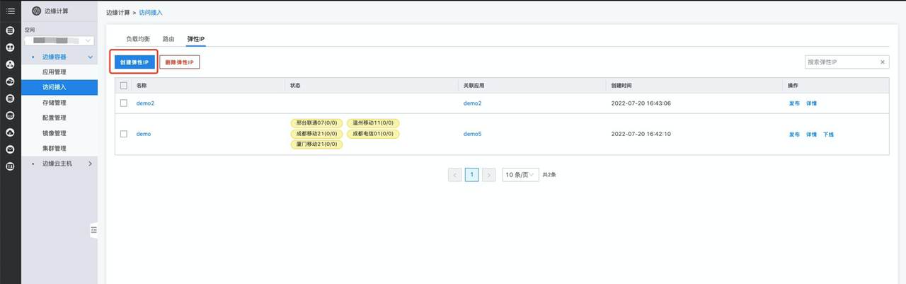 创建完成后您可在访问接入模块的弹性IP列表处管理您的弹性IP。