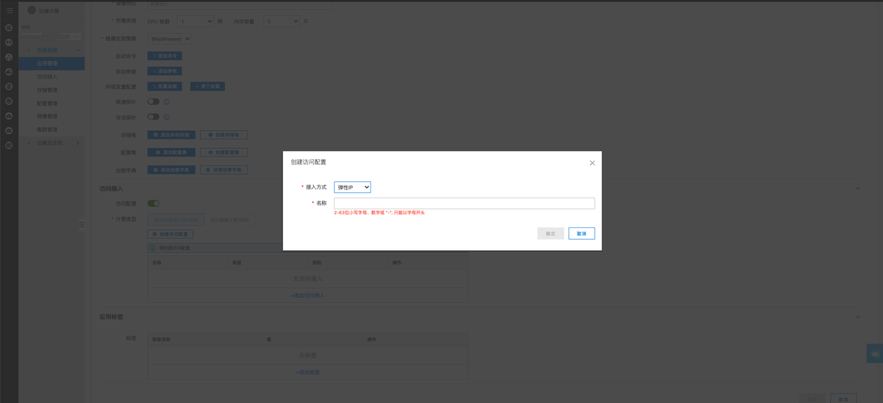 在访问接入管理处,点击创建弹性IP或在创建应用时点击创建访问配置,如下图所示: