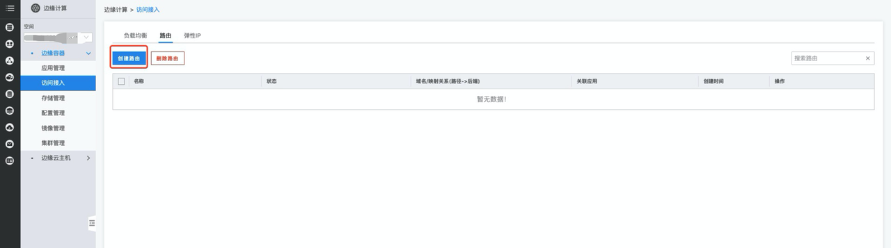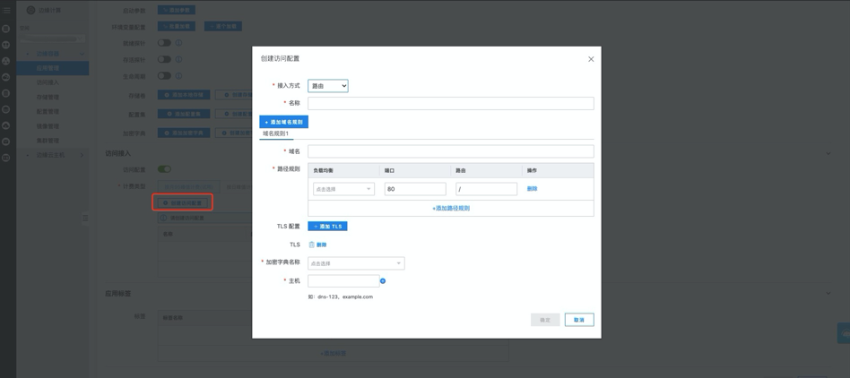 在访问接入模块处,点击创建路由或在创建应用时点击创建配置,如下图所示:
