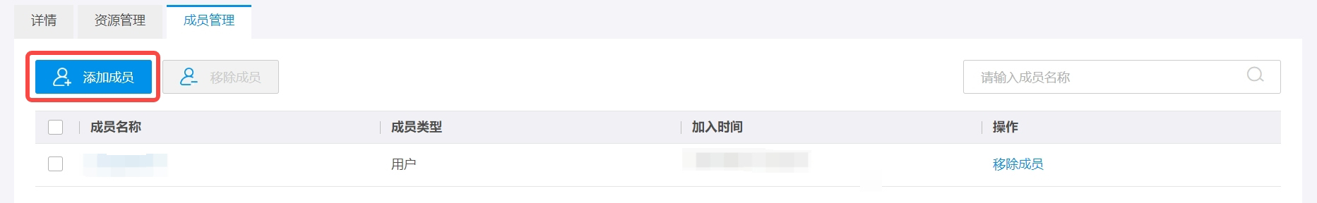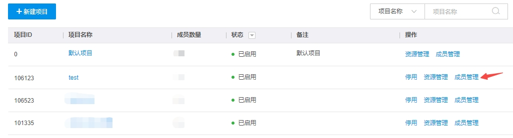 3.点击添加成员,将子用户加入项目中。