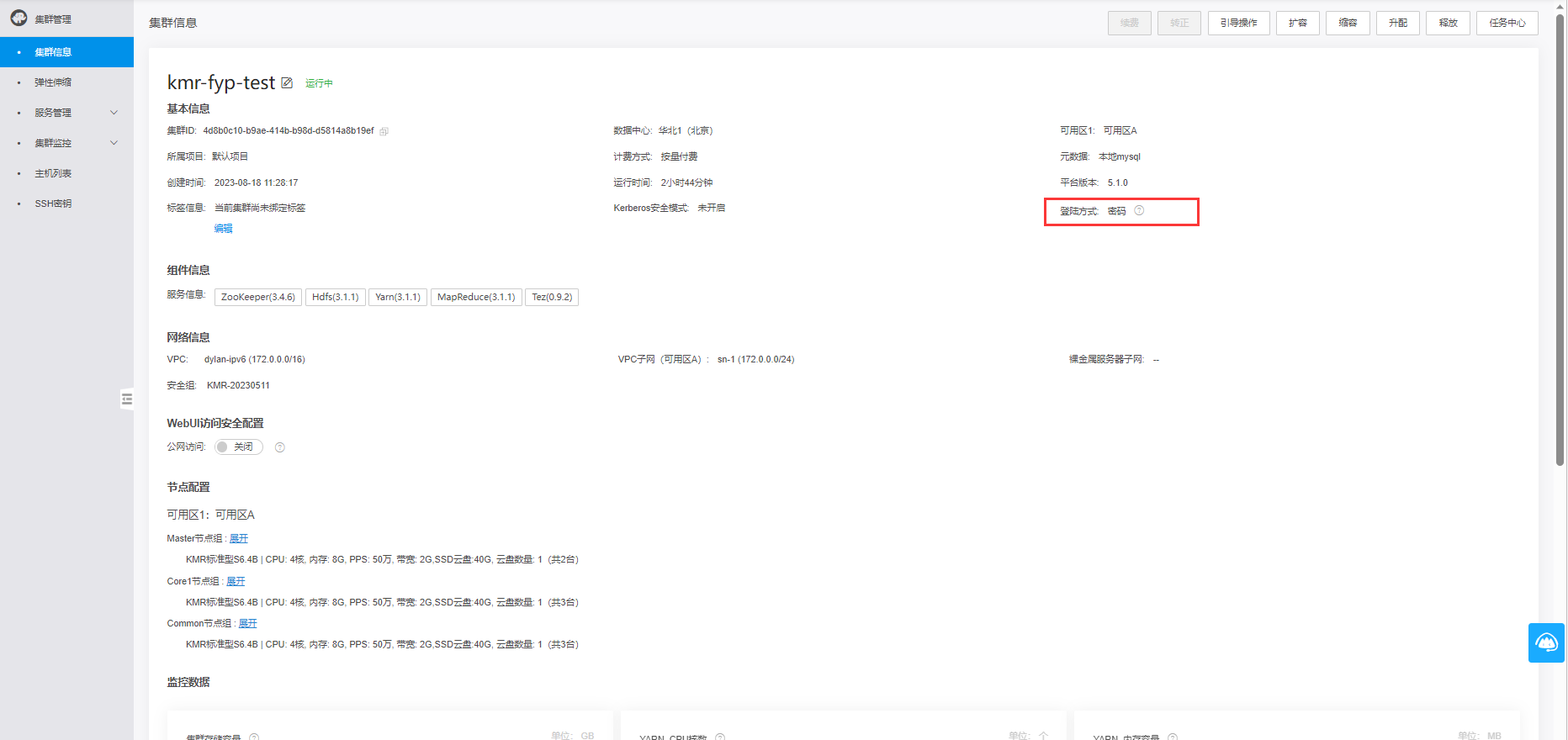 集群详情页面支持查看登录方式,若需要修改节点登录密码需要前往主机控制台。