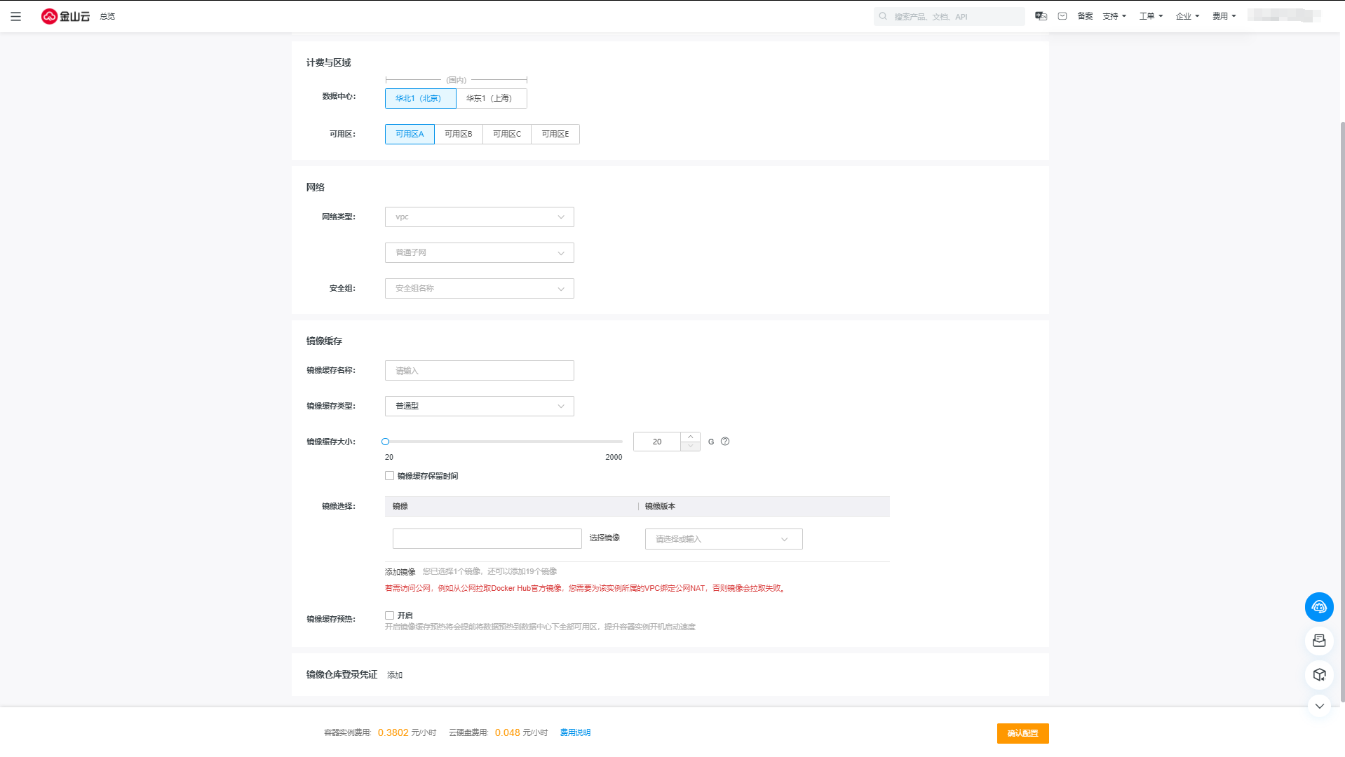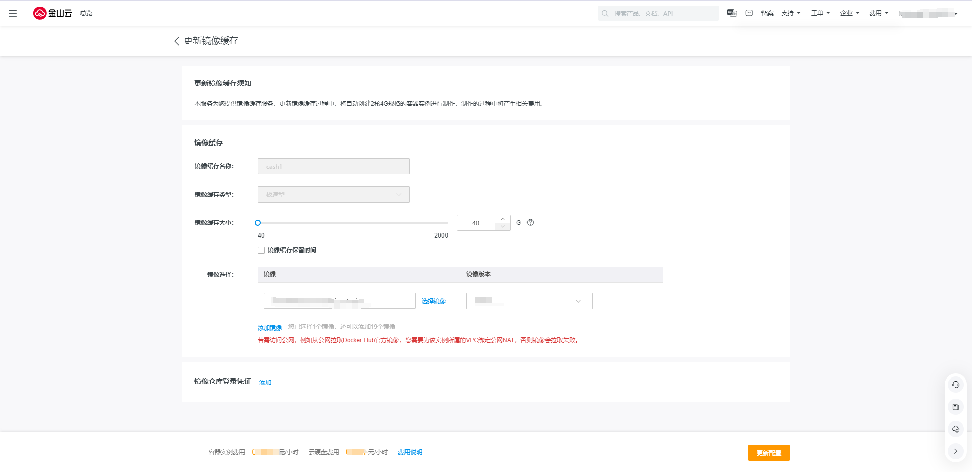 2.更新镜像缓存过程中,也将自动创建2核4G规格的容器实例进行镜像缓存的更新,制作的过程中将产生相关费用,在镜像缓存更新完成后,该容器实例会自动释放并停止计费。