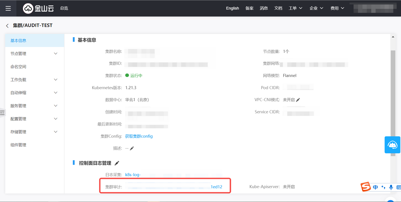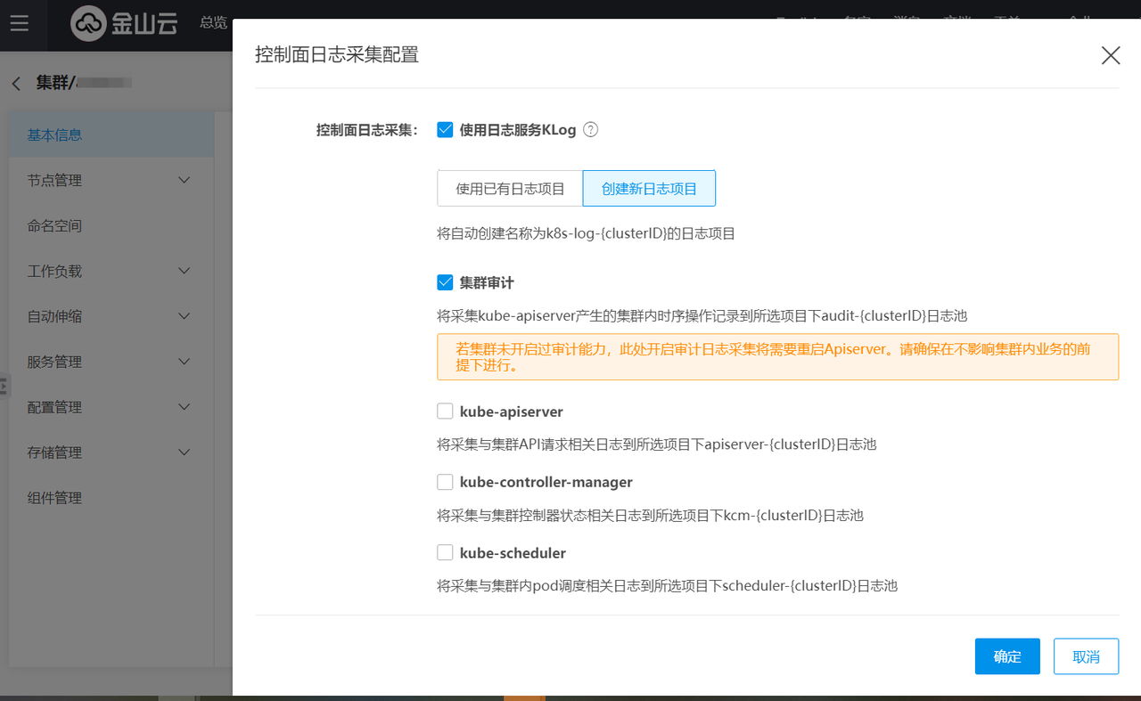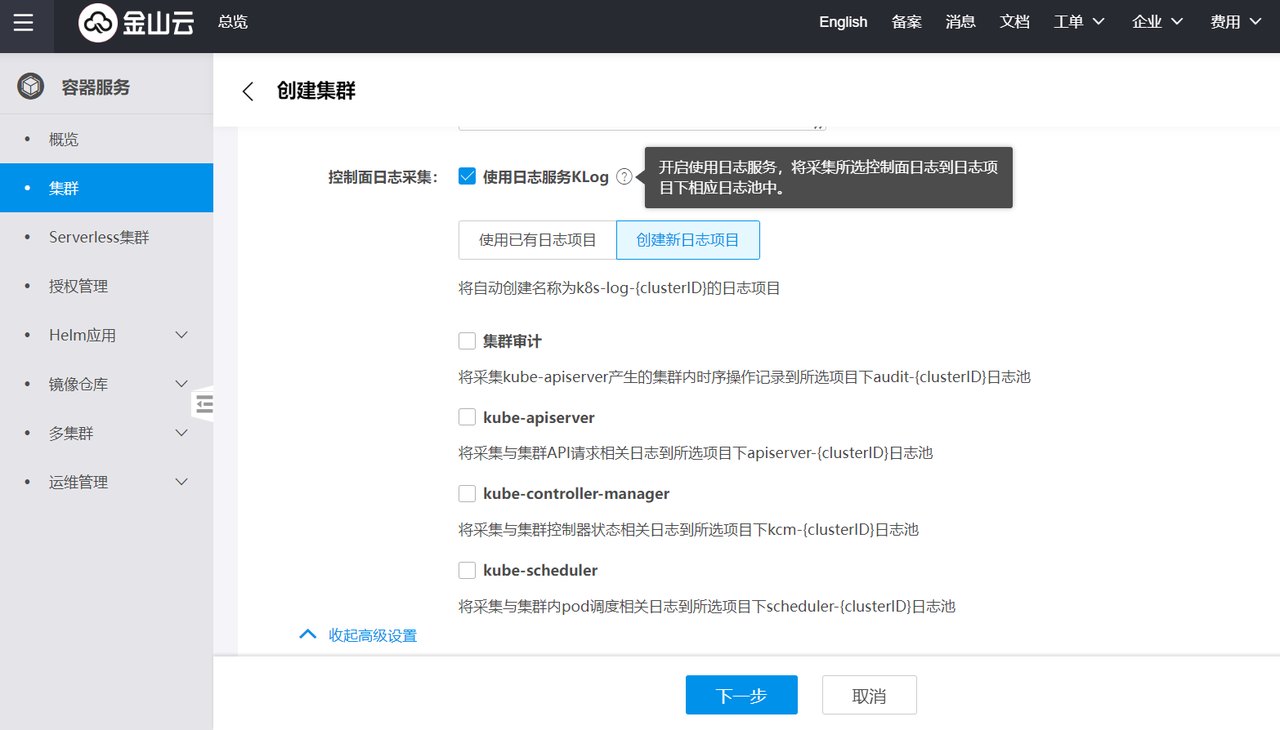 此处重点讲解集群审计功能的开启,创建集群的更多步骤说明请参照 创建集群。