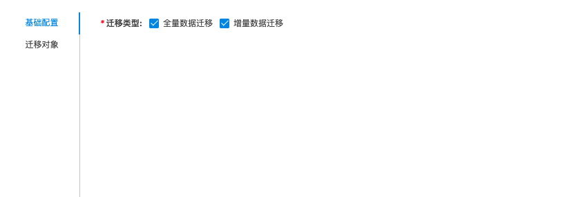 在迁移类型及列表页面,配置迁移类型、迁移对象。