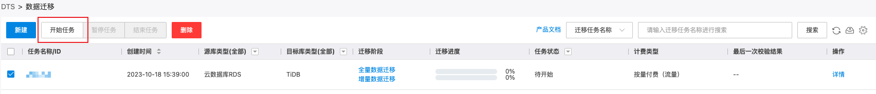 支付成功后迁移任务创建完成,单击开始任务后迁移任务正式开始。如果您需要对任务进行管理,详见 任务管理。