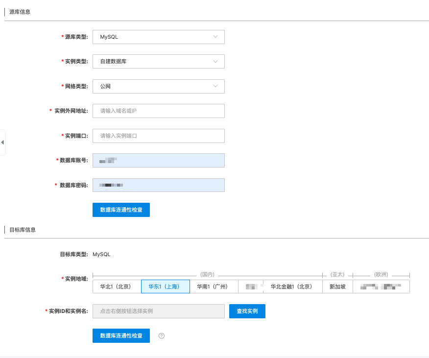 实例地域 | 选择目标库所属地域。 | |
