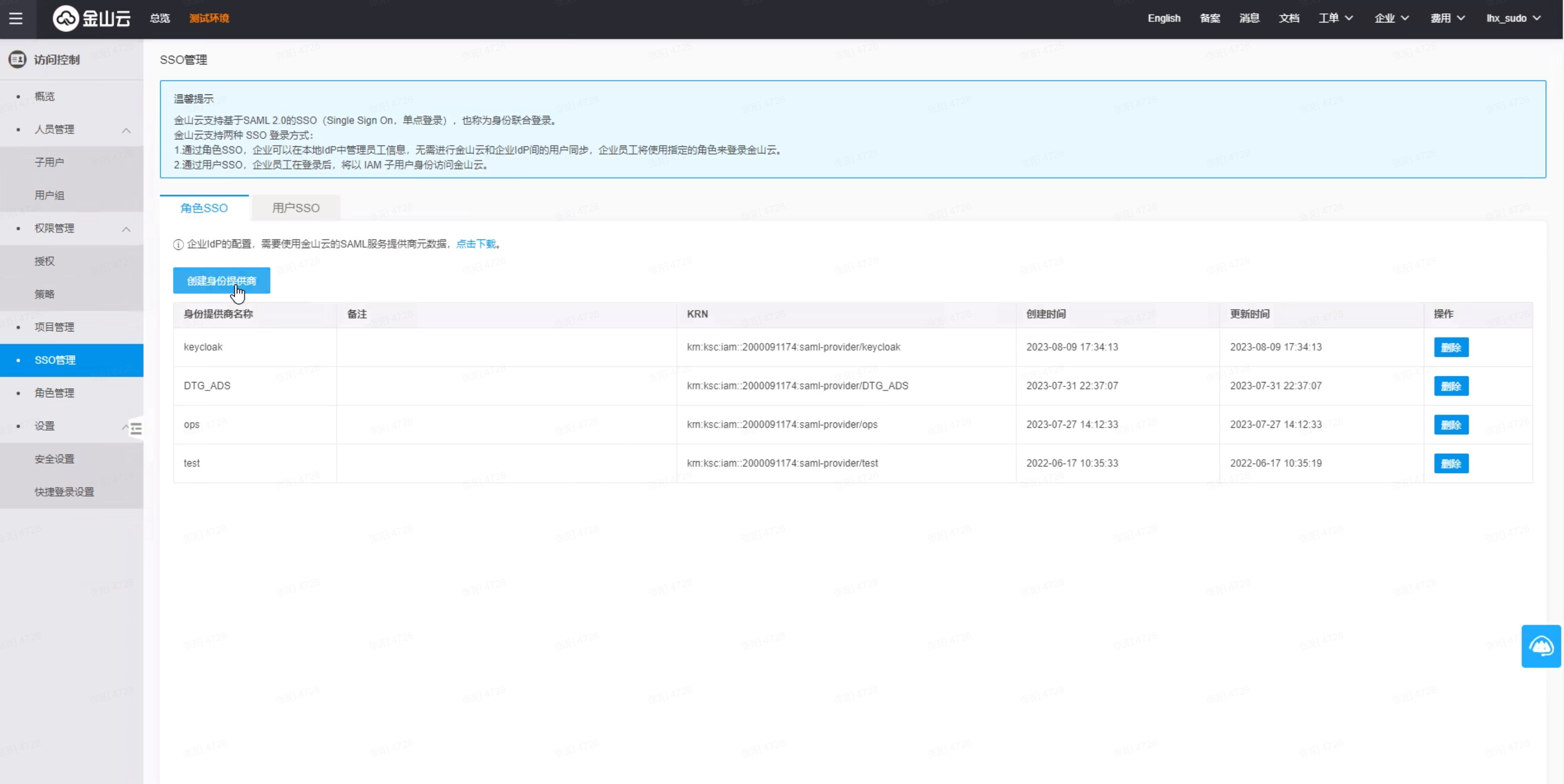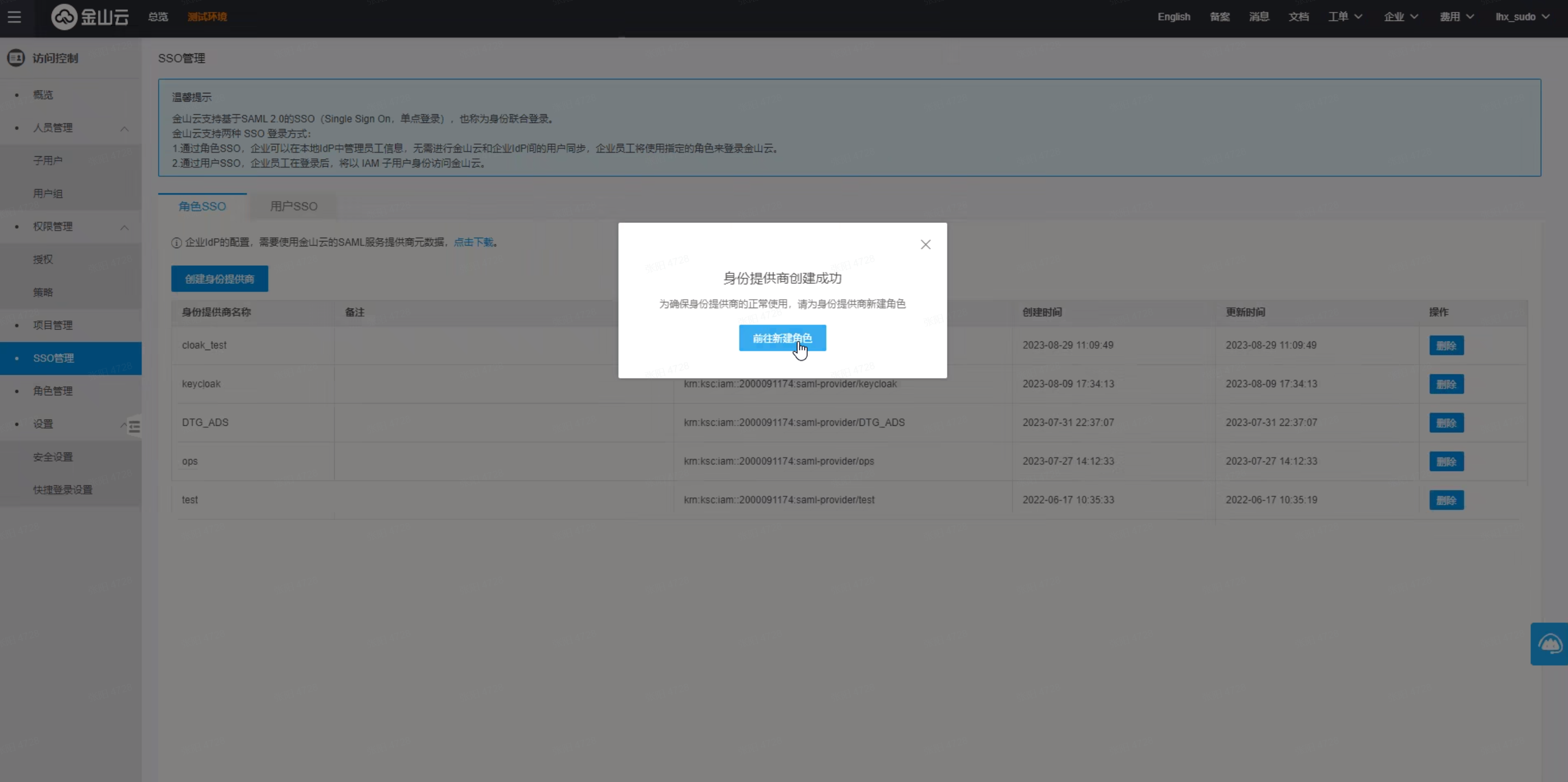 选择左侧菜单SSO管理