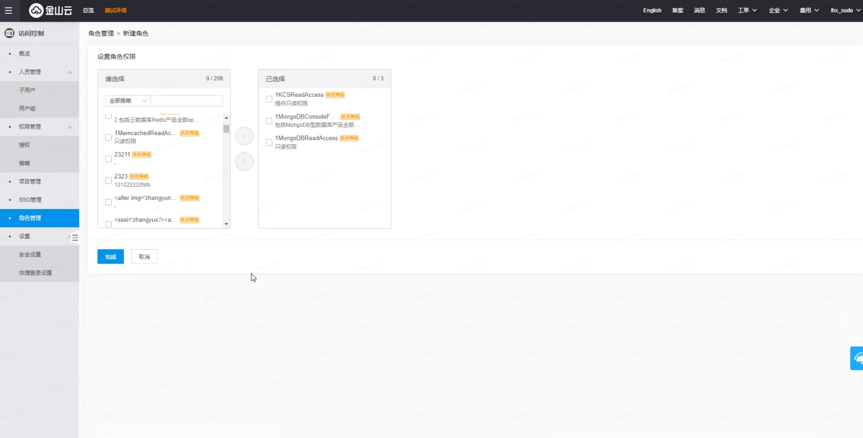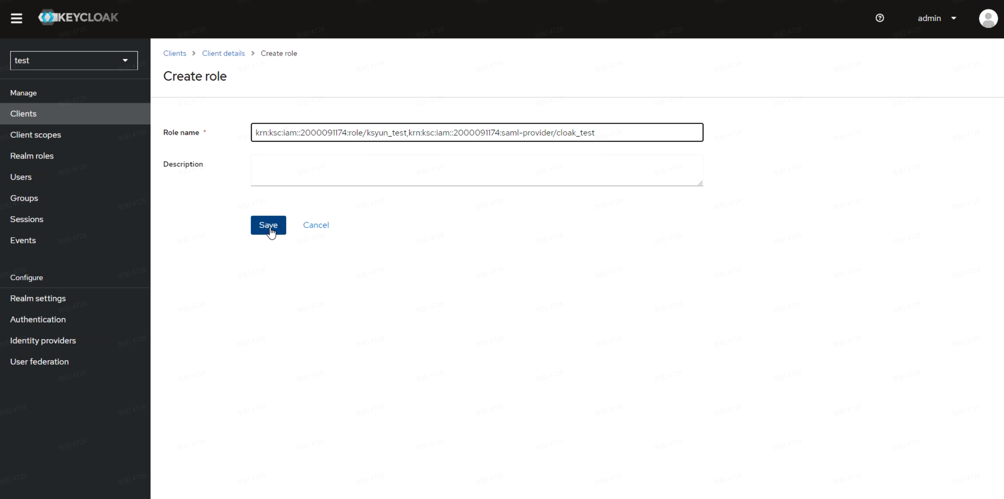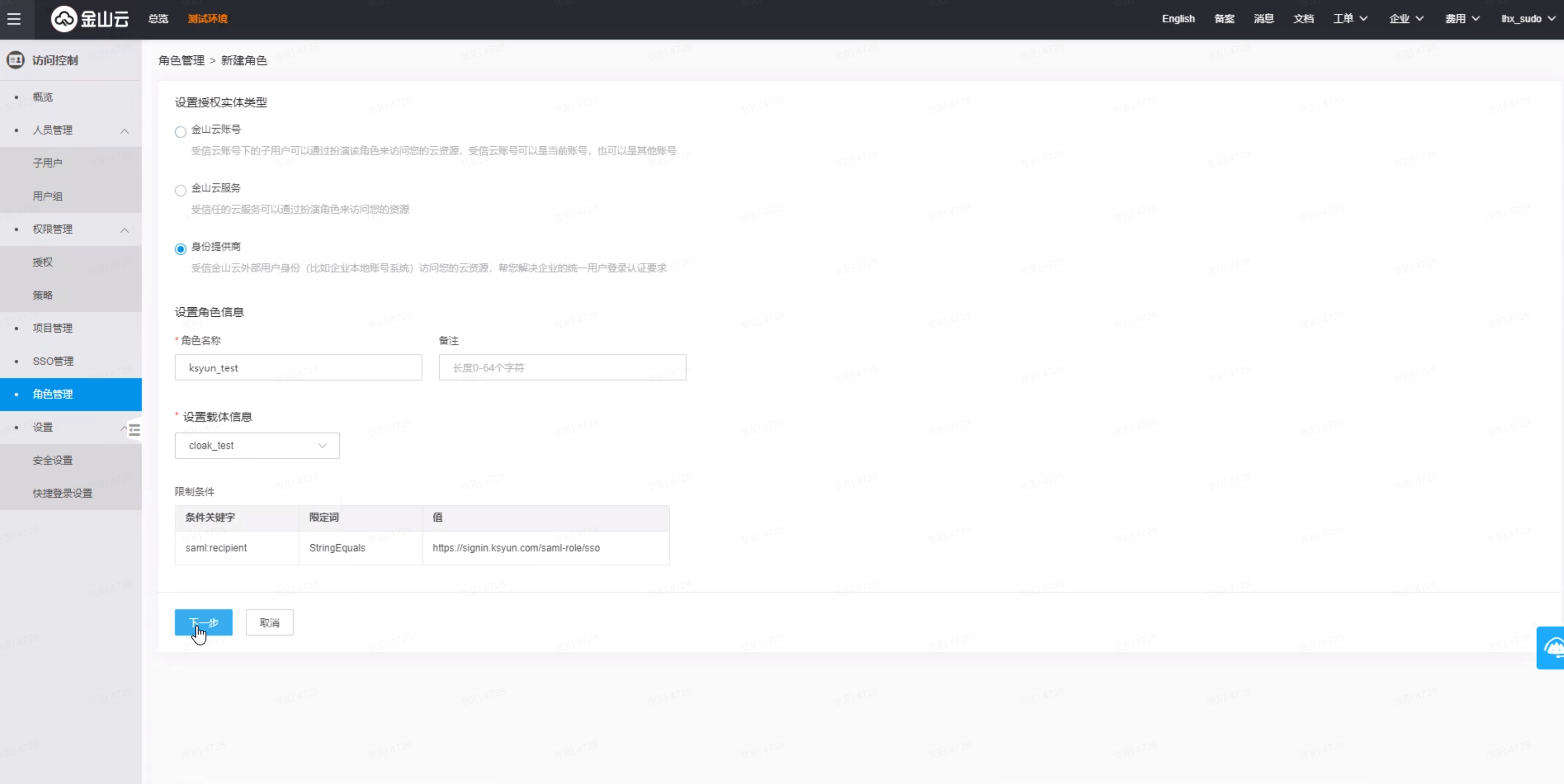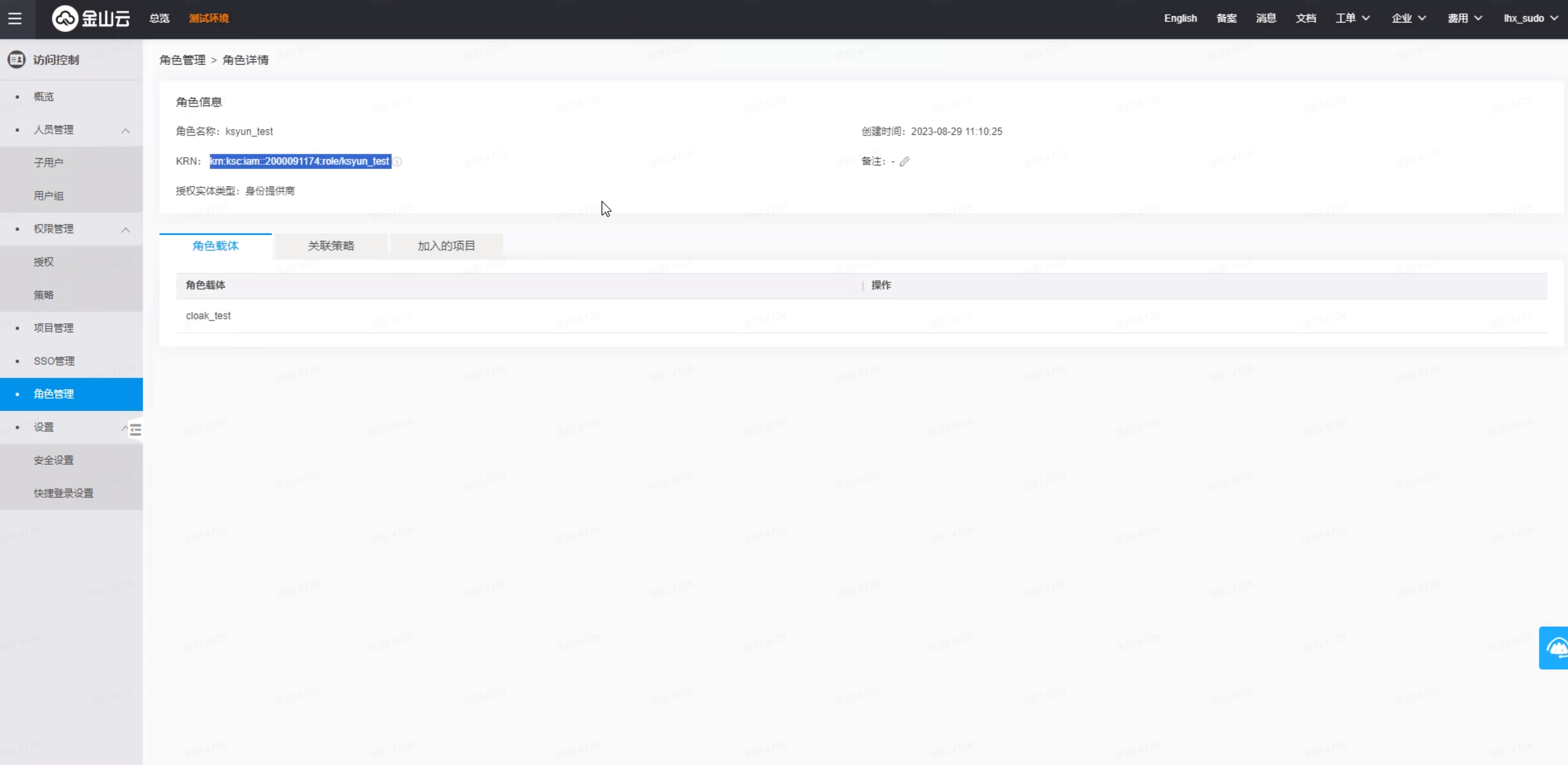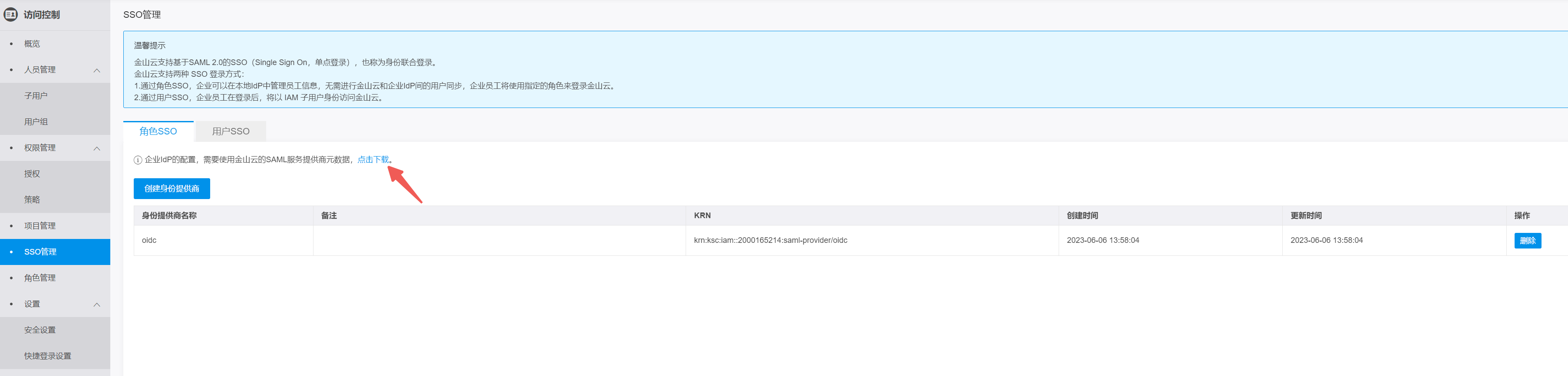 Role name为访问控制“角色KRN”+“身份提供商KRN”,以英文逗号连接