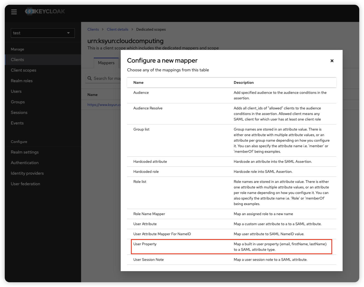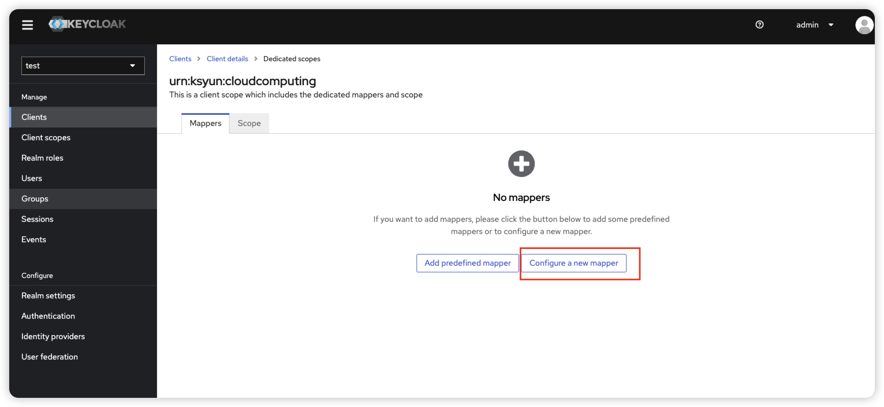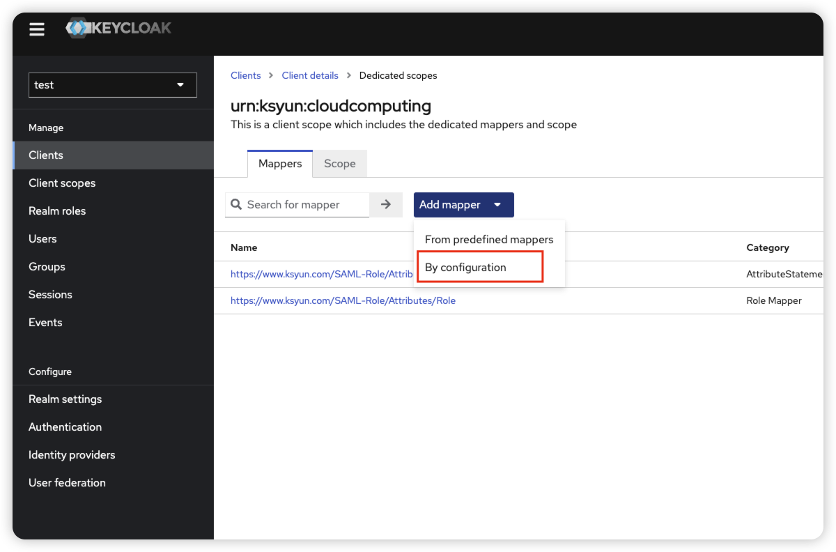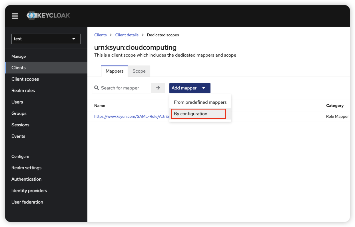 点击Configure a new mapper,选择Role list