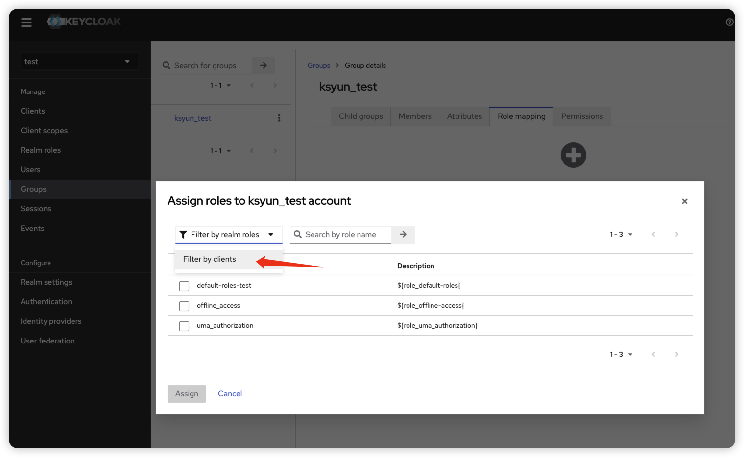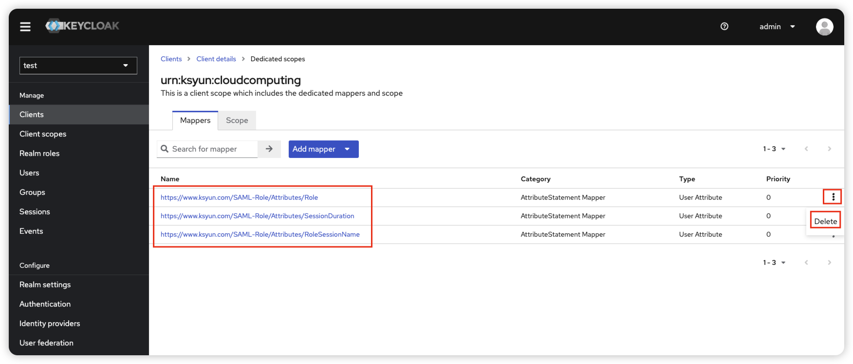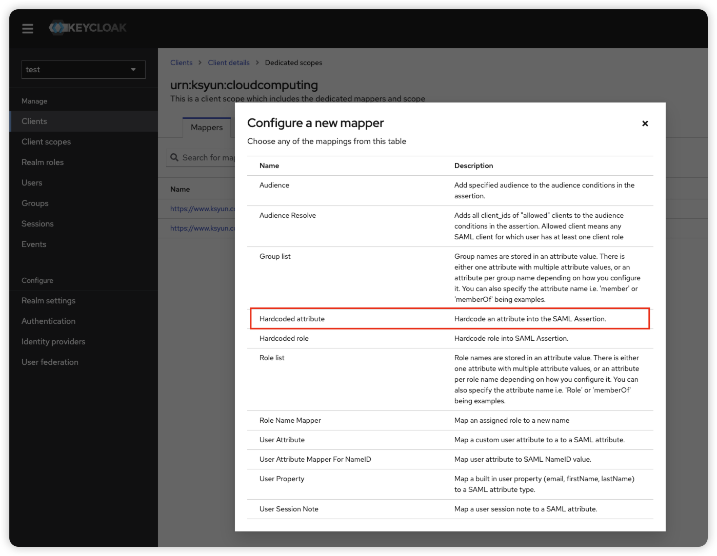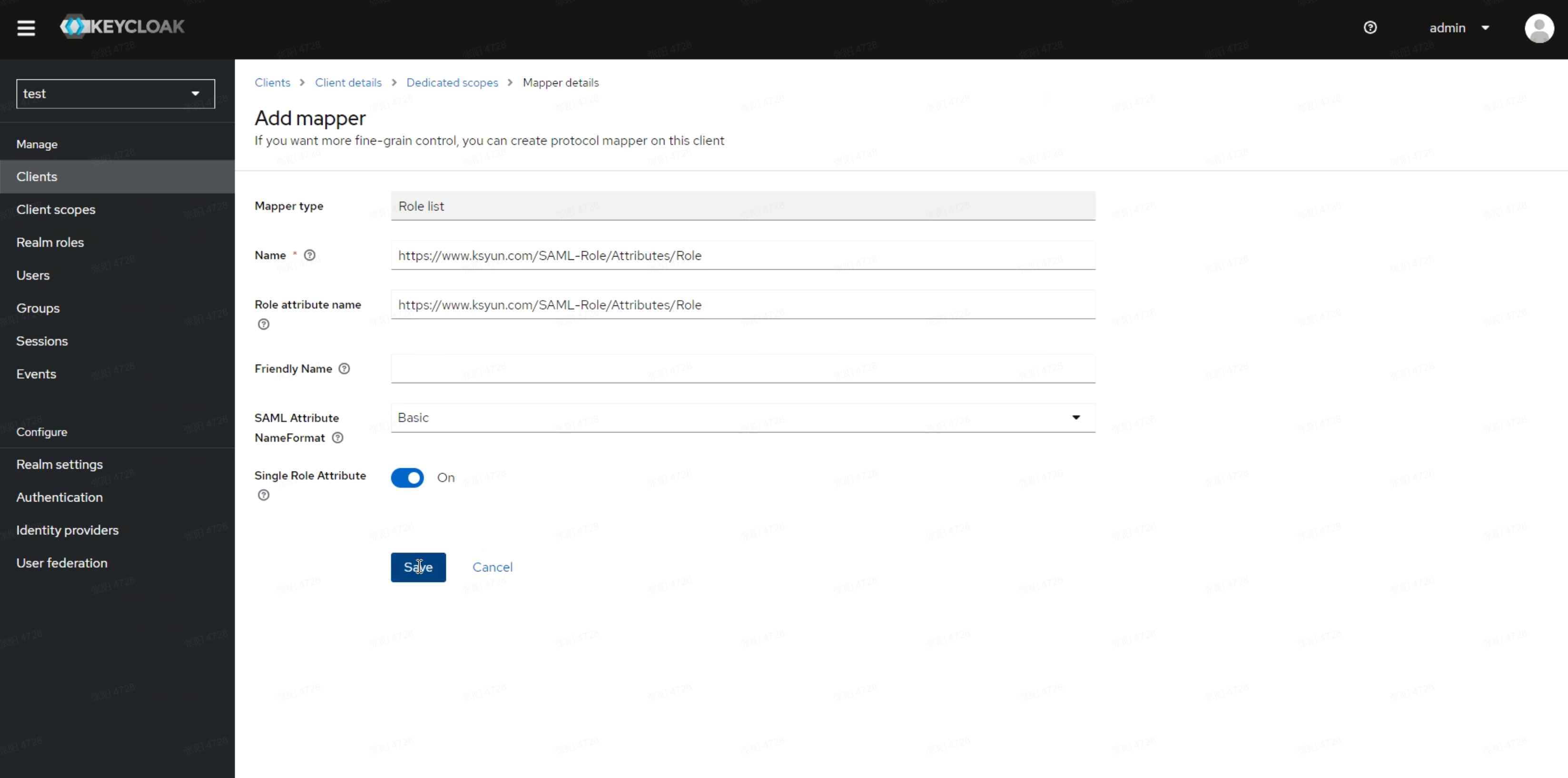 点击Configure a new mapper,选择Role list