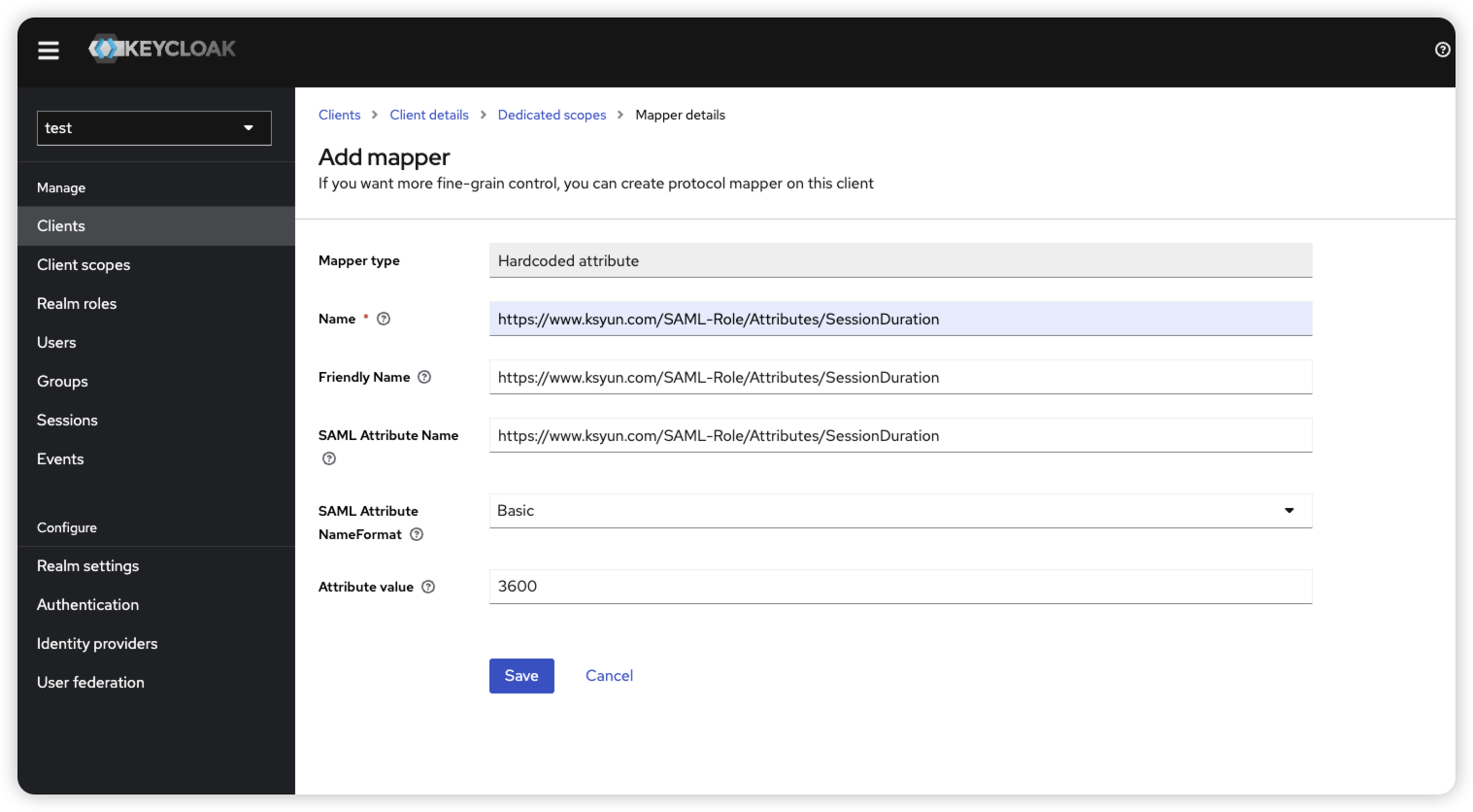 Name和Friendly Name、SAML Attribute Name填写:https://www.ksyun.com/SAML-Role/Attributes/SessionDuration