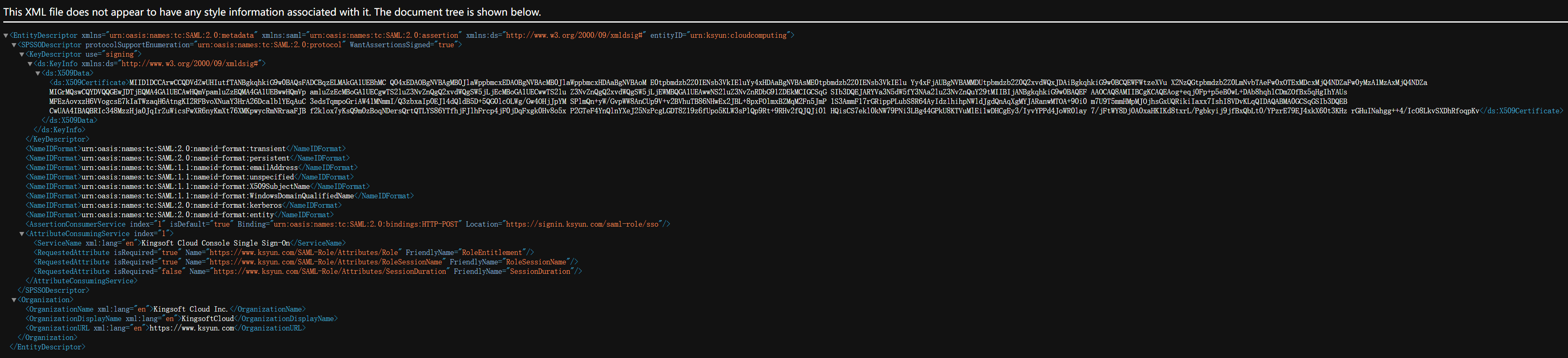 Name和SAML Attribute Name使用:https://www.ksyun.com/SAML-Role/Attributes/RoleSessionName