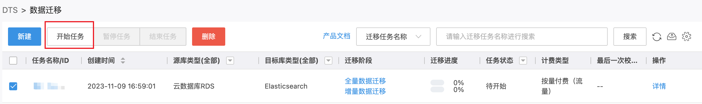 支付成功后迁移任务创建完成,单击开始任务后迁移任务正式开始。如果您需要对任务进行管理,详见 任务管理。
