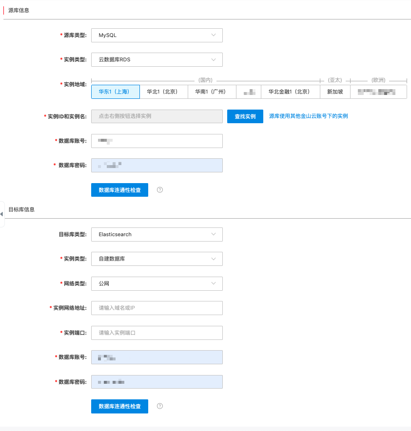 目标库信息 | 目标库类型 | 数据库类型,此处选择Elasticsearch。 |