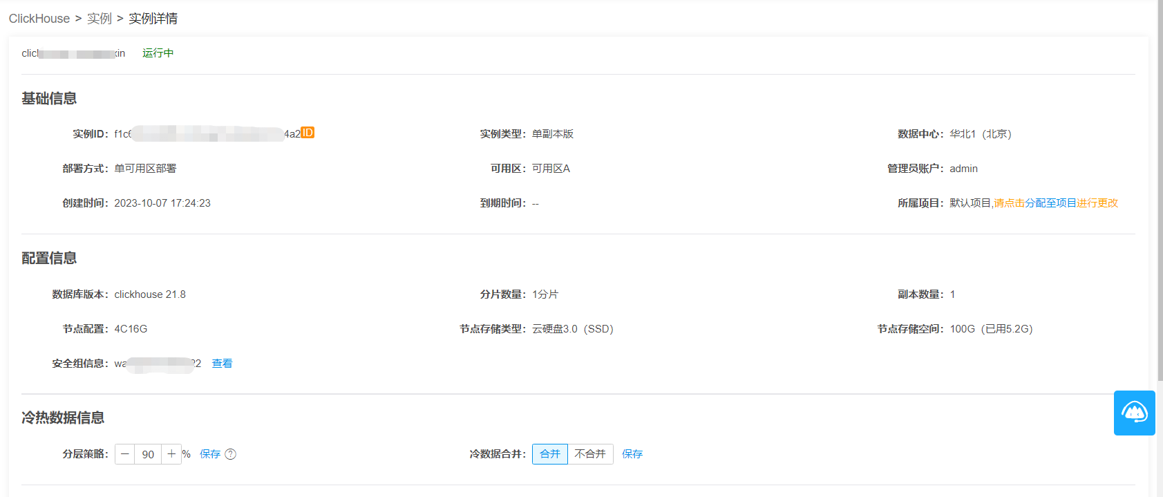 4. 在实例详情页面中可以查看冷热数据分层信息