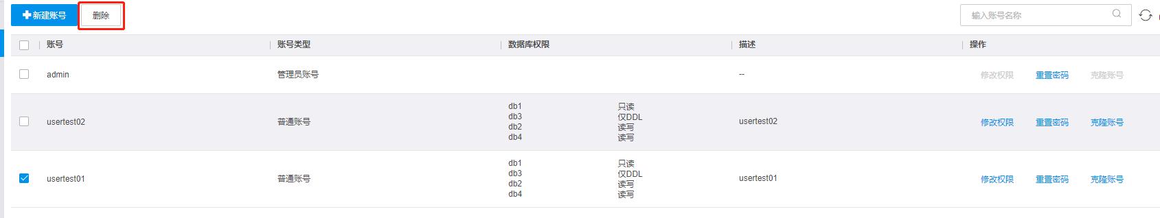 1. 管理员账号不支持删除。