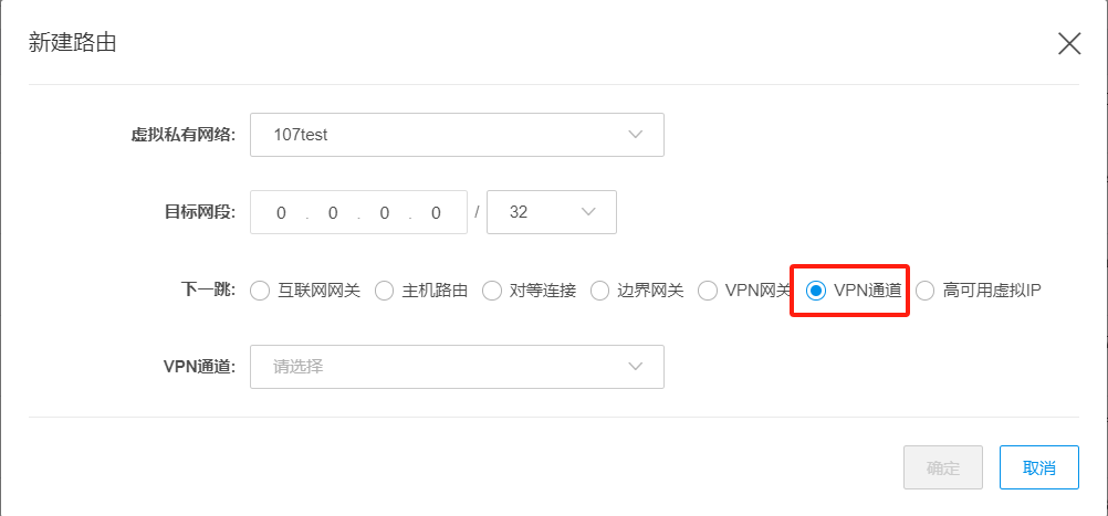 VPN通道:选择创建的VPN通道。