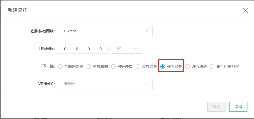 下一跳:如果下一跳类型是VPN通道,选择对应的VPN通道;如果下一跳类型是VPC,下一跳置灰无需填写。