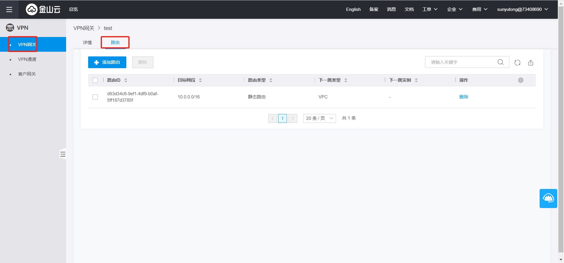 填写VPN网关路由