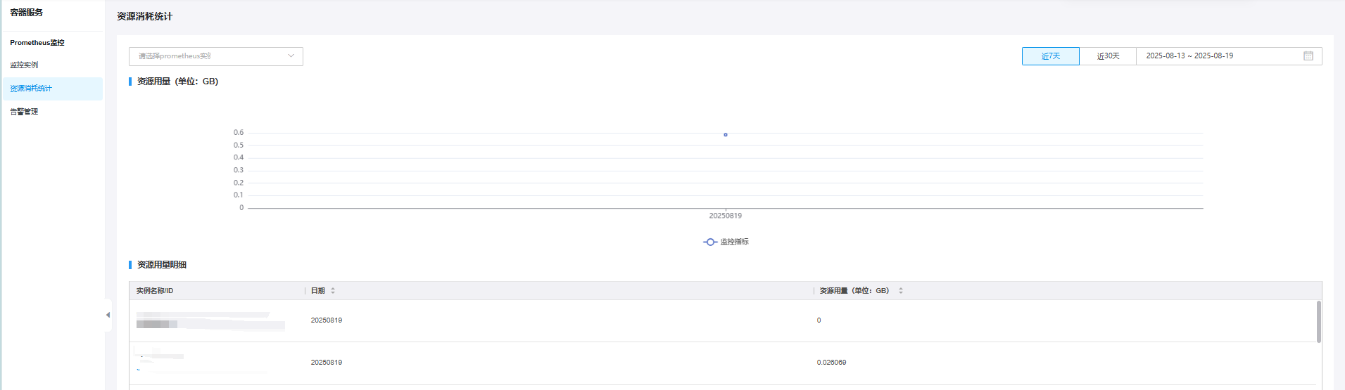 左上角可选择需要查询的实例,支持多选,若不选默认查询所有实例的资源消耗情况。