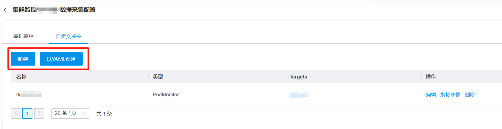 在自定义监控列表中,可通过表单或者yaml两种方式创建自定义监控。