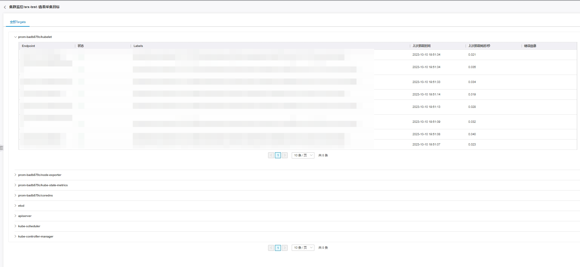 选择需要查看的集群,点击右侧操作栏的查看采集目标,进入查看采集目标页面。