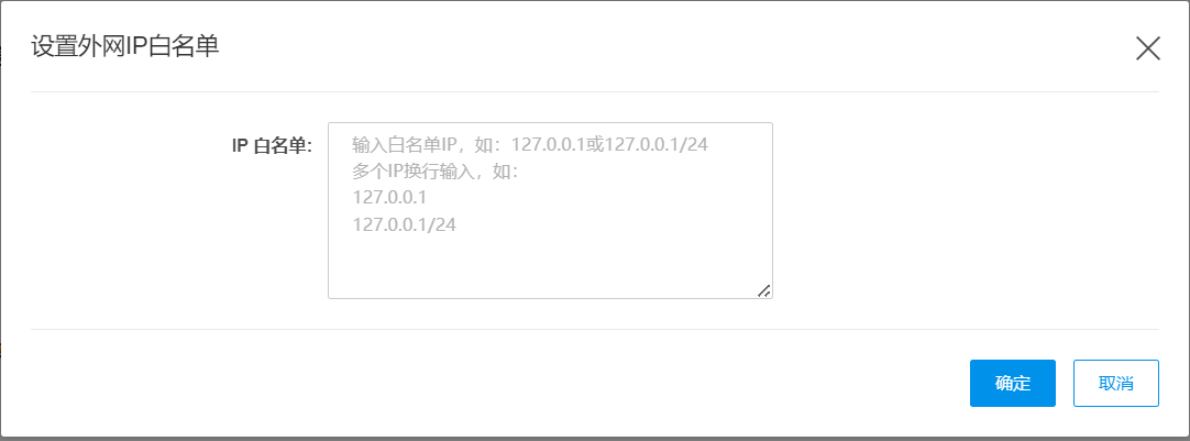在弹出页面中输入需添加的IP白名单。