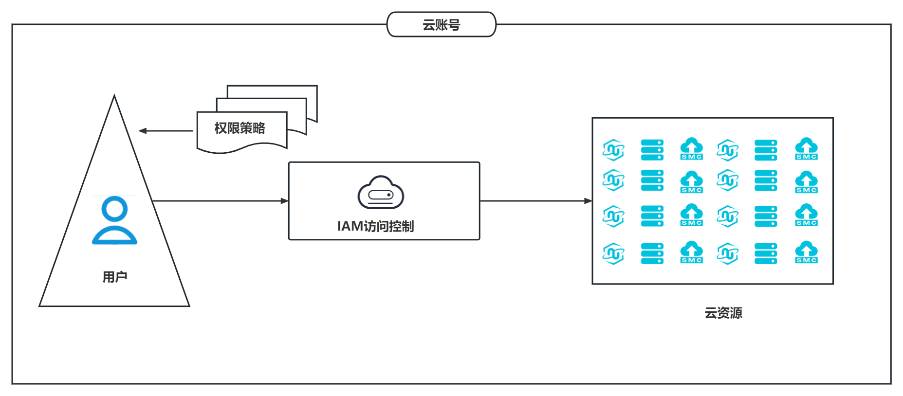 - 云账号内授权:对一个IAM身份主体添加权限策略时,该策略的可授权范围是云账号内的所有资源,这是最常见的一种权限模型。