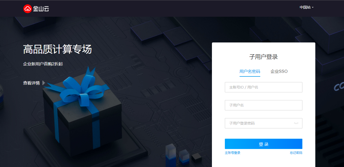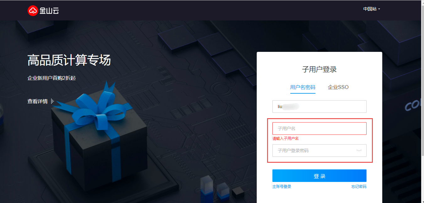 通过子官网登录页进行子用户登录操作。