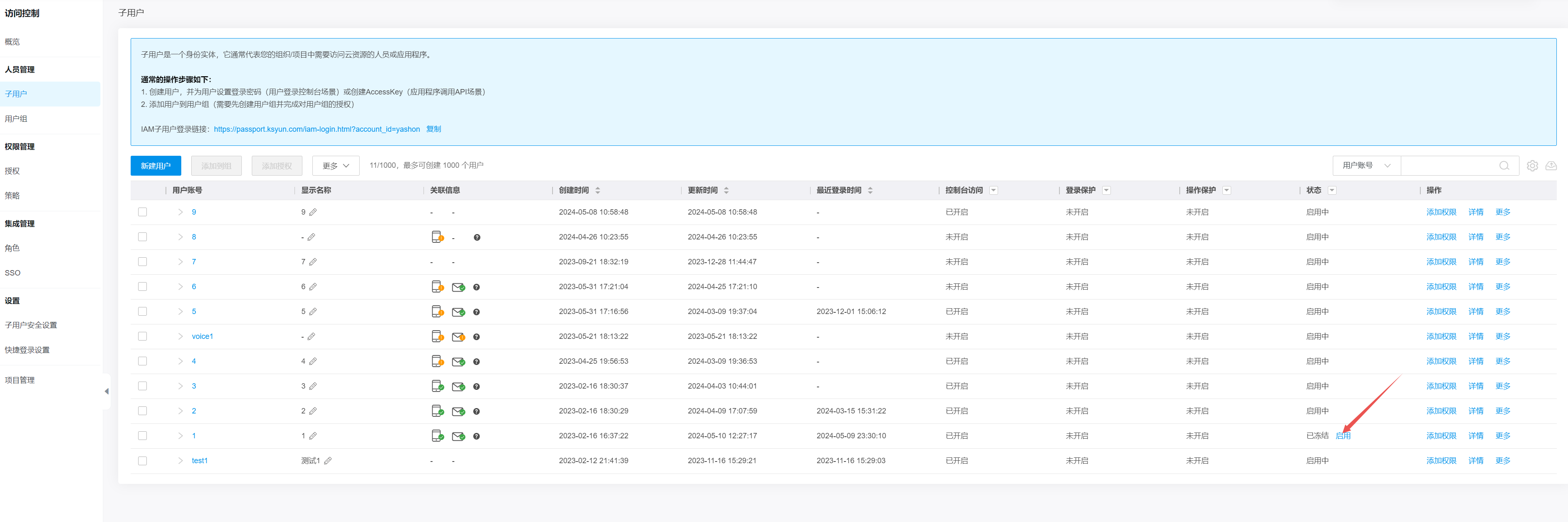 联系主账号,通过访问控制/子用户列表启用