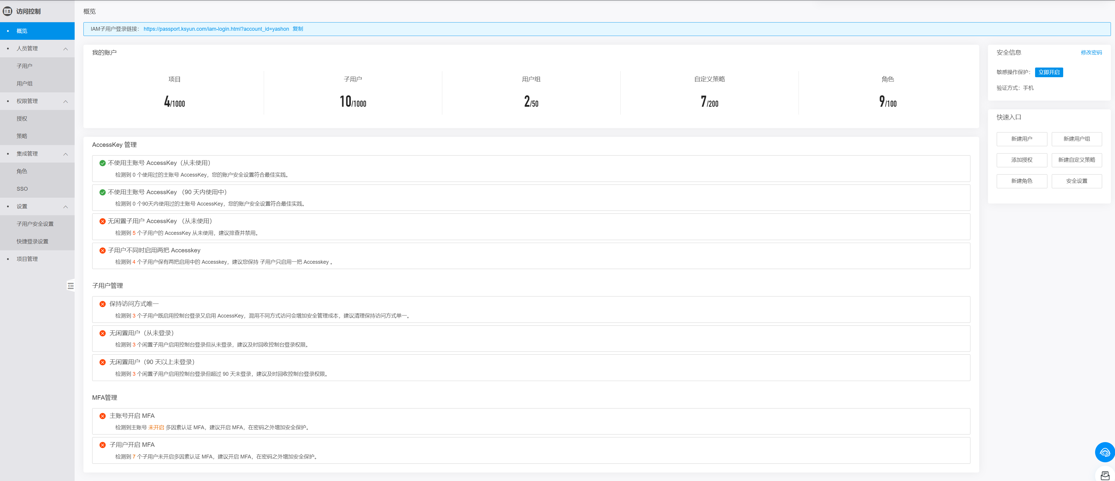 点击概览,链接地址即为子用户登录地址: