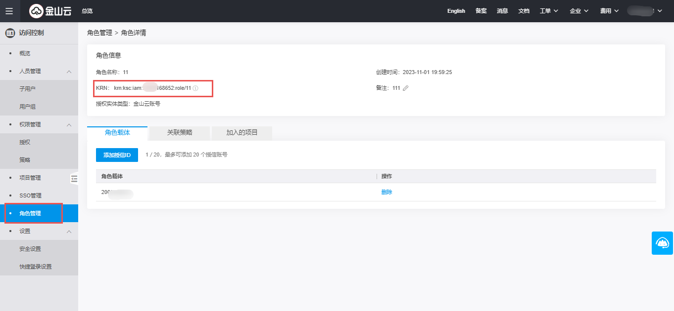 身份提供商:允许可信身份提供商下的用户所扮演的角色。此类角色主要用于实现与金山云的SSO。