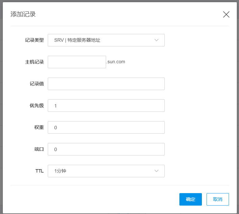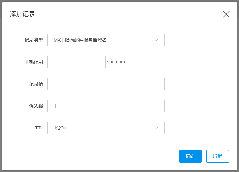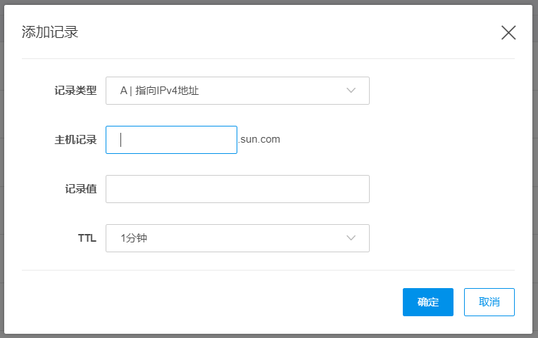 4.点击 添加记录 ,并添加主机记录为 1 的 PTR 记录,将其指向主机 host.test.com ,此时,IP 地址 192.168.1.1 的反解即是 host.test.com。