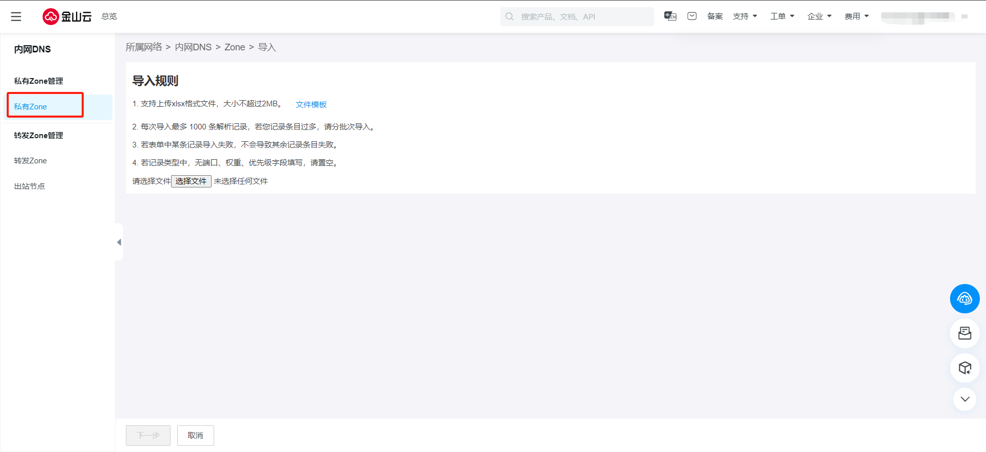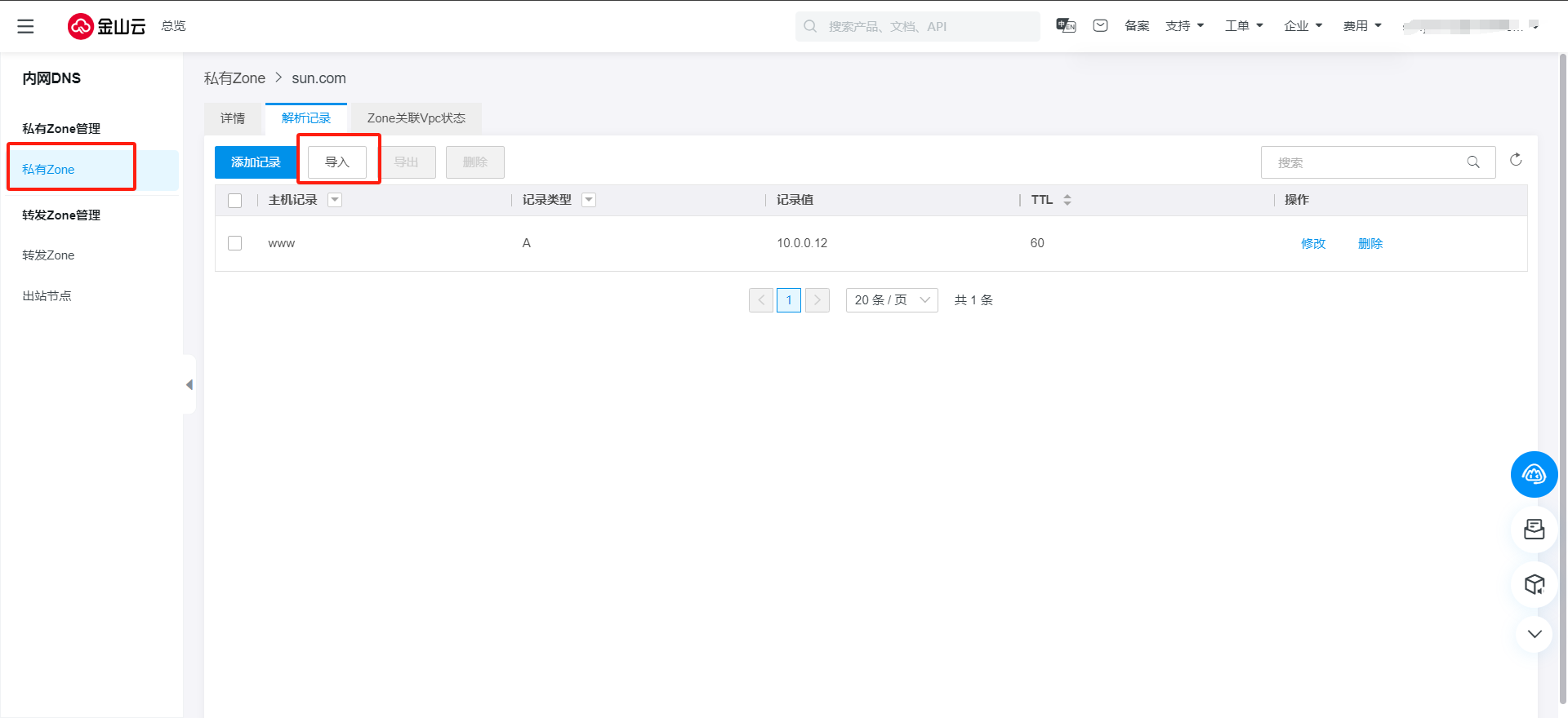 1.登录到内网 DNS 控制台,前往 私有Zone 列表页。