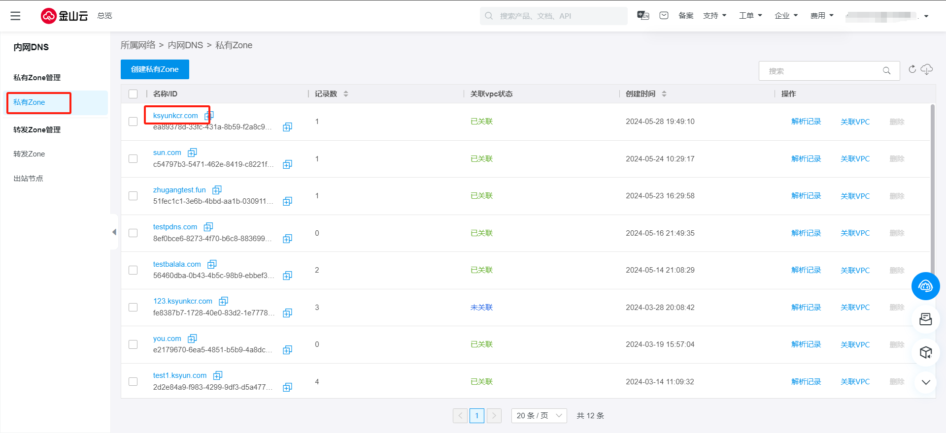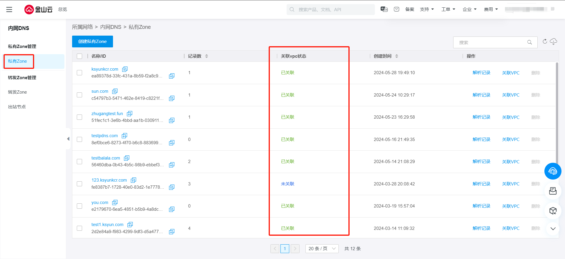 关联中:代表Zone正在与VPC进行关联,Zone首次关联VPC耗时相对较长。
