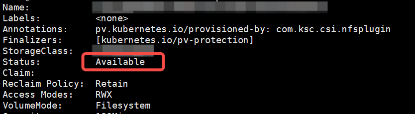再次查看PV已处于可用状态: