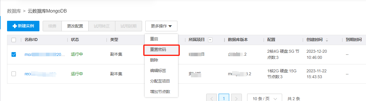 1.登录云数据库MongoDB控制台。进入MongoDB实例列表。