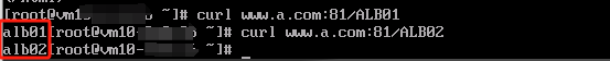 3. 客户端使用curl 域名:端口/路径命令访问负载均衡,显示如下,说明访问不同的路径能将请求转发到服务器组Test-Group-01和Test-Group-02,服务器组里的服务器能正常响应请求。