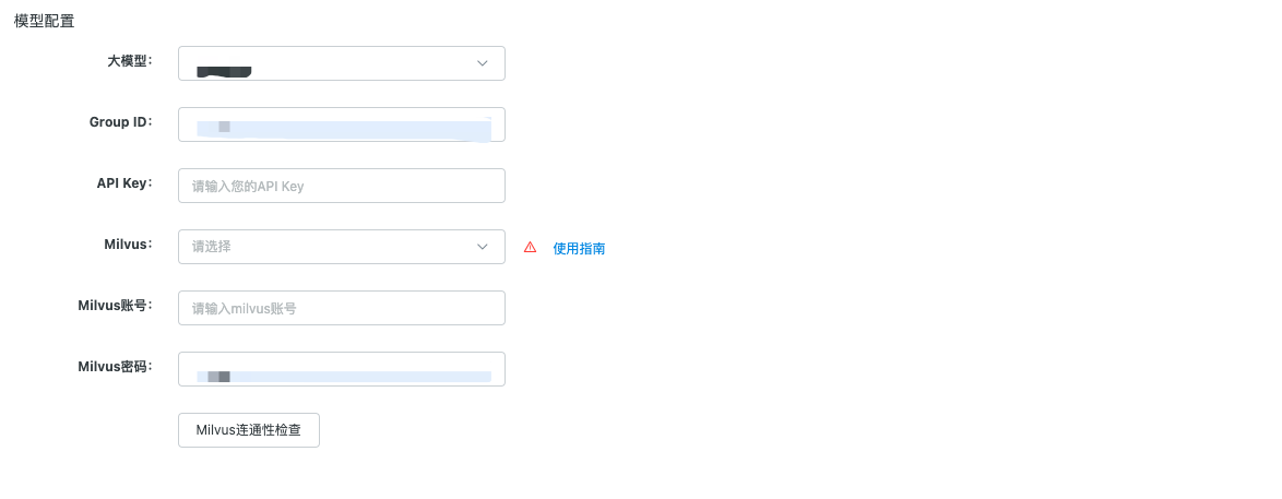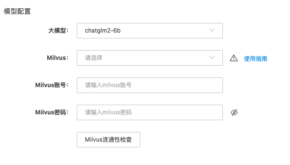 Milvus连通性检查 | 验证输入的Milvus账号、密码的准确性。 |