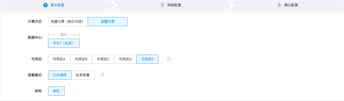 基础配置 | 计费方式 | 目前仅支持按量付费和按量付费(按日月结)两种计费方式。 |