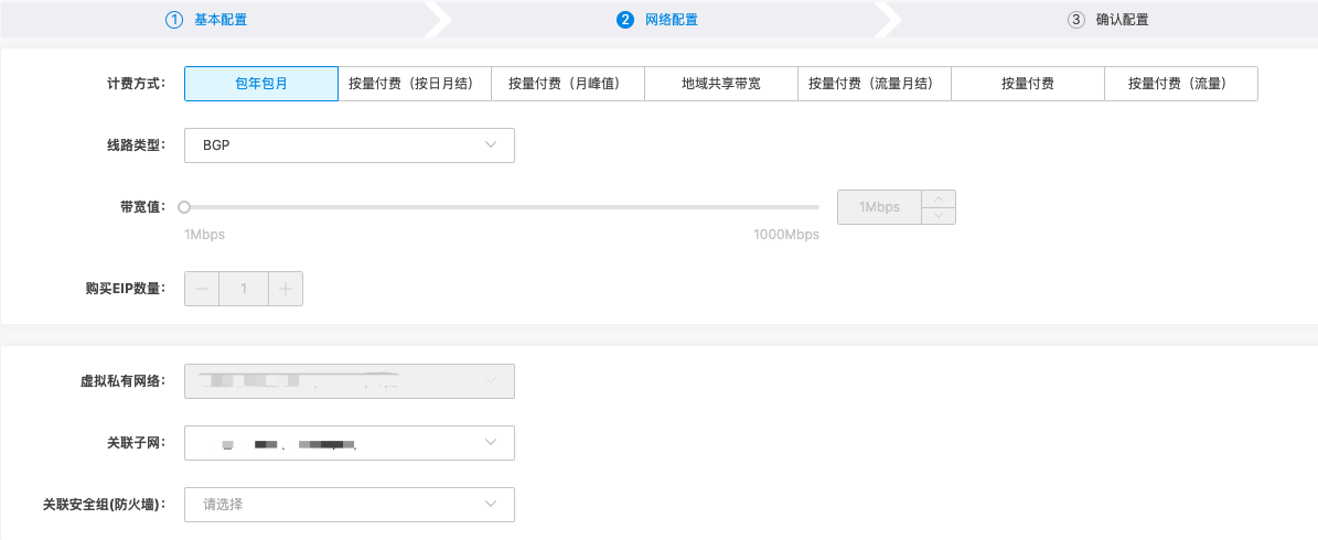 网络配置 | 计费方式 | 选择对应的计费方式。 |