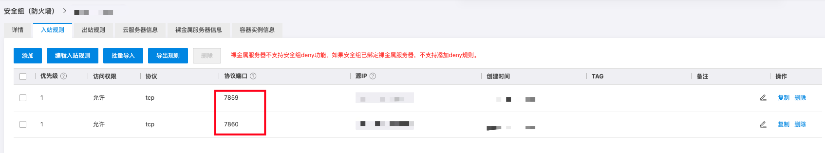 在网络信息模块点击绑定的安全组,进入安全组控制台。