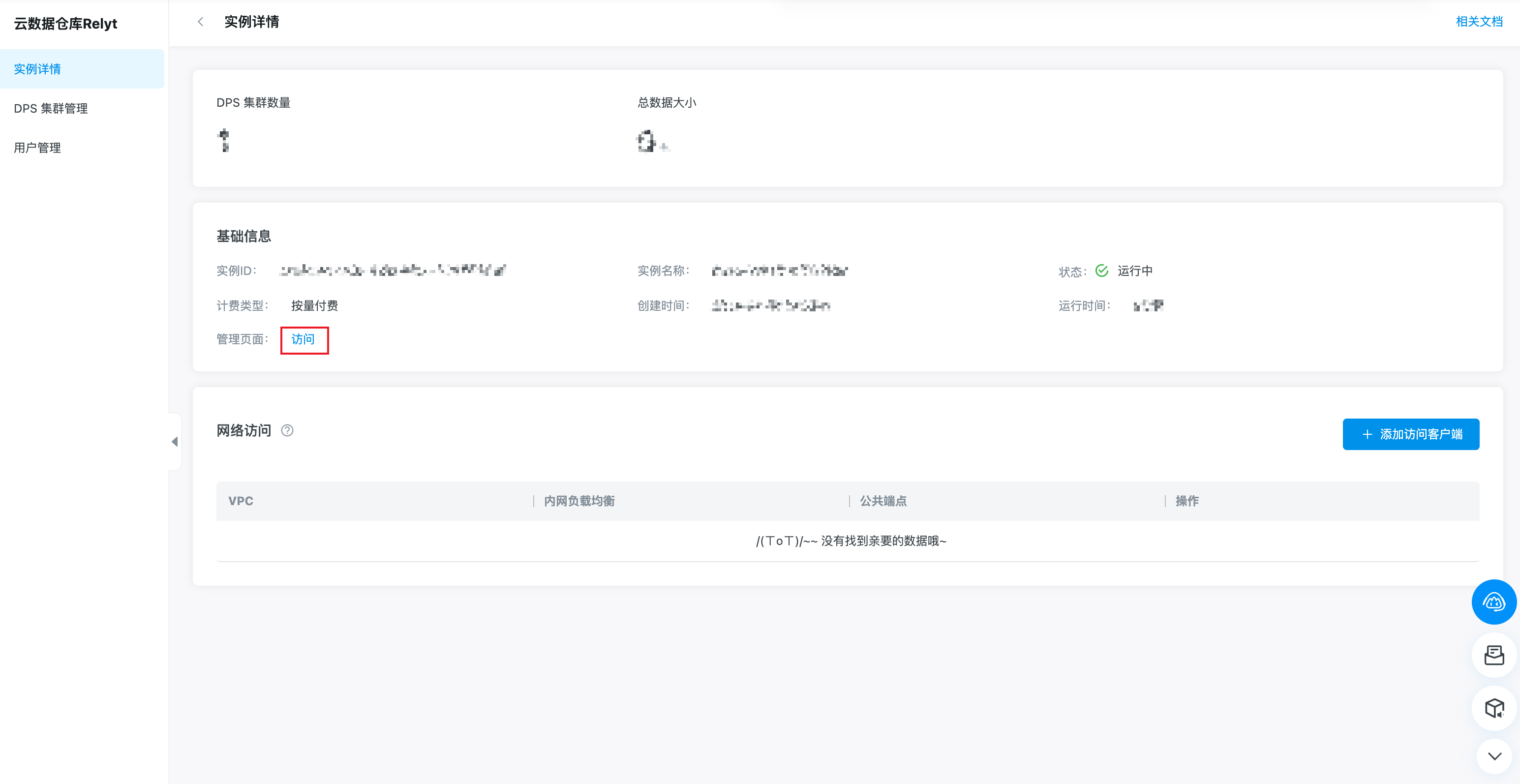 4. 在 基础信息 区域,点击 访问。