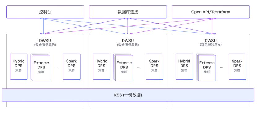 多 DPS 集群:DPS 集群是 Relyt 数仓服务单元的计算集群。DPS 集群分为多种类型:Hybrid DPS 集群具备兼容 PostgreSQL 功能的数据仓库服务能力;Extreme DPS 集群提供比 Hybrid DPS 集群高出数十倍的性能优势,但是功能上是 Hybrid DPS 集群的子集。二者之间的具体差异,请参考 Relyt 的 SQL 手册和函数手册;Spark DPS 集群还在研发中。Hybrid DPS 集群目前在一个数仓服务单元中有且仅有一个,Extreme DPS 集群支持按需创建多个,DPS 集群之间完全物理隔离,保障负载之间无干扰。