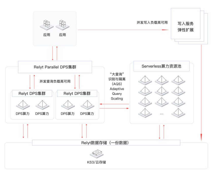 Relyt 的 DPS 集群支持多种类型、多种规格、按需部署、按需变配、自动启停,具备高度的可扩展性,能够在业务高峰期迅速扩展资源,满足激增业务需求,避免因资源不足而影响业务运行。当业务高峰过去,多余的 DPS 集群能够自动暂停服务,且暂停服务期间不会产生任何费用。此外,Relyt 的特性 AQS(Adaptive Query Scaling) 能够在 DPS 运行时识别出大查询并通过将这些大查询调度到共享计算资源池中进行处理,从而保证了 DPS 集群的正常业务的稳定运行,同时也满足了非预期大查询的执行需求。