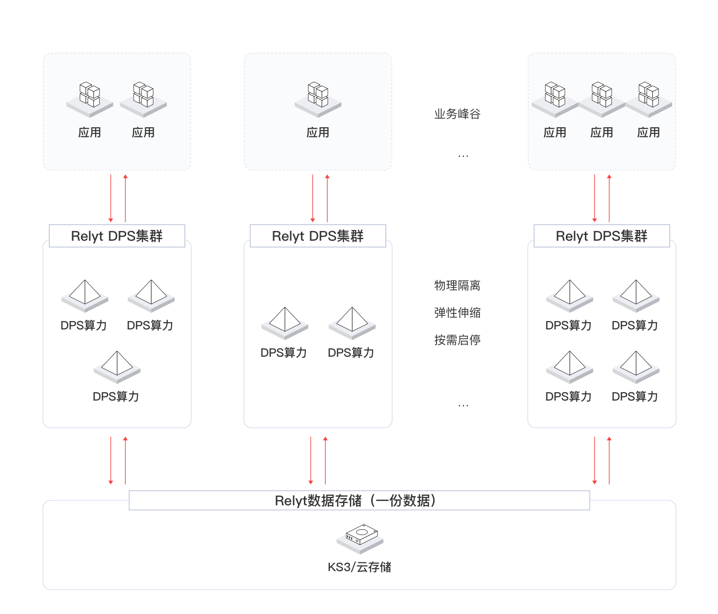Relyt 提供了卓越的实时性、弹性和可靠性,采用“存算分离 + SHARED-DATA”架构, 计算资源实例 DPS 集群支持按需部署、按需扩展、自动启停,以及以查询为粒度的自适应计算资源扩展,灵活应对业务变化的敏捷需求。