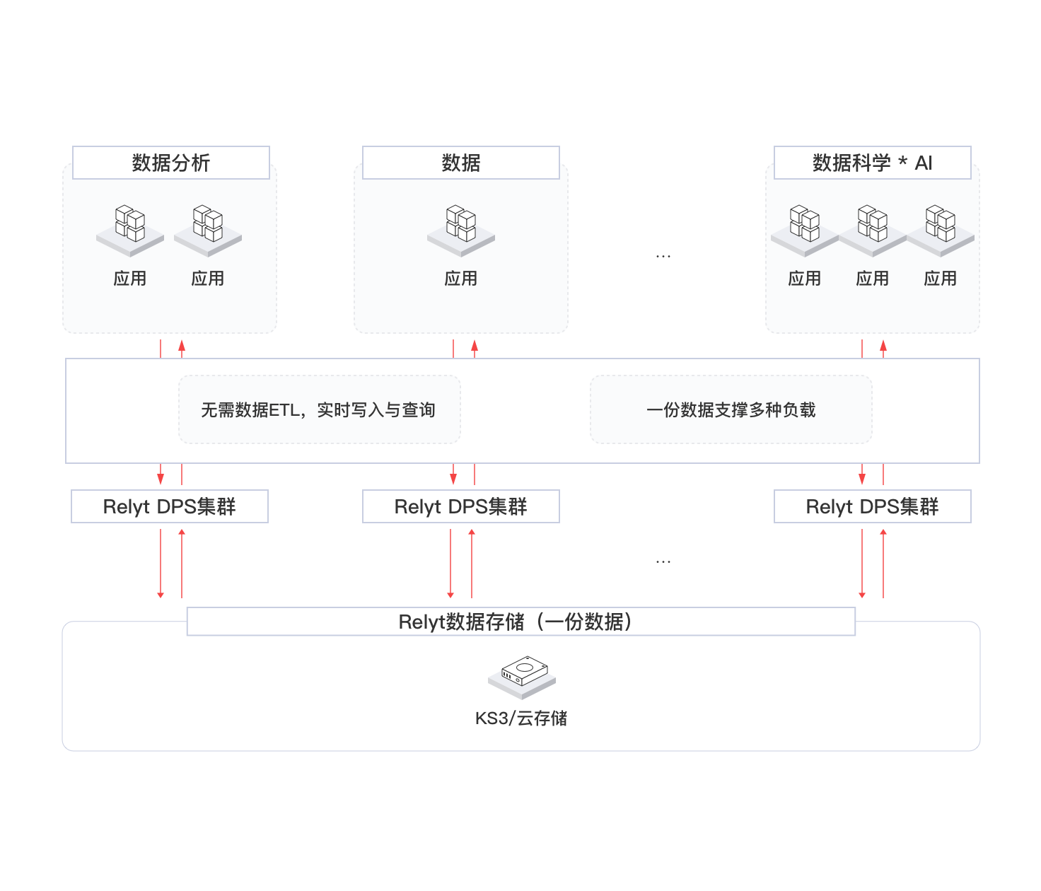 Relyt 数据云支持结构化、半结构化等多种格式的数据,分析型、事务型、数据科学 & AI 等多种数据负载,在 Relyt 数据云上,无需 ETL 即可一站式完成数据存储、数据查询和数据分析等核心业务需求,将数据处理难度降至最小的同时,保证了数据的实时性。