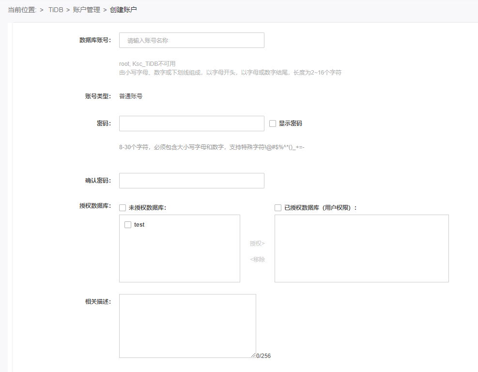 其中授权数据库和相关描述与原账号相同,需要修改数据库账号(账号不能重复)。