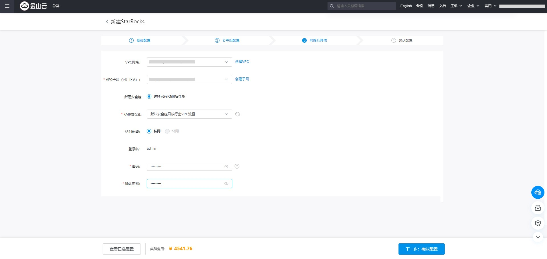 安全组:KMR安全组包含了一组安全规则,用来控制对云数据库KMR实例的连接访问。您可直接新建一个安全组,如果已有KMR安全组,则可以直接选择使用。